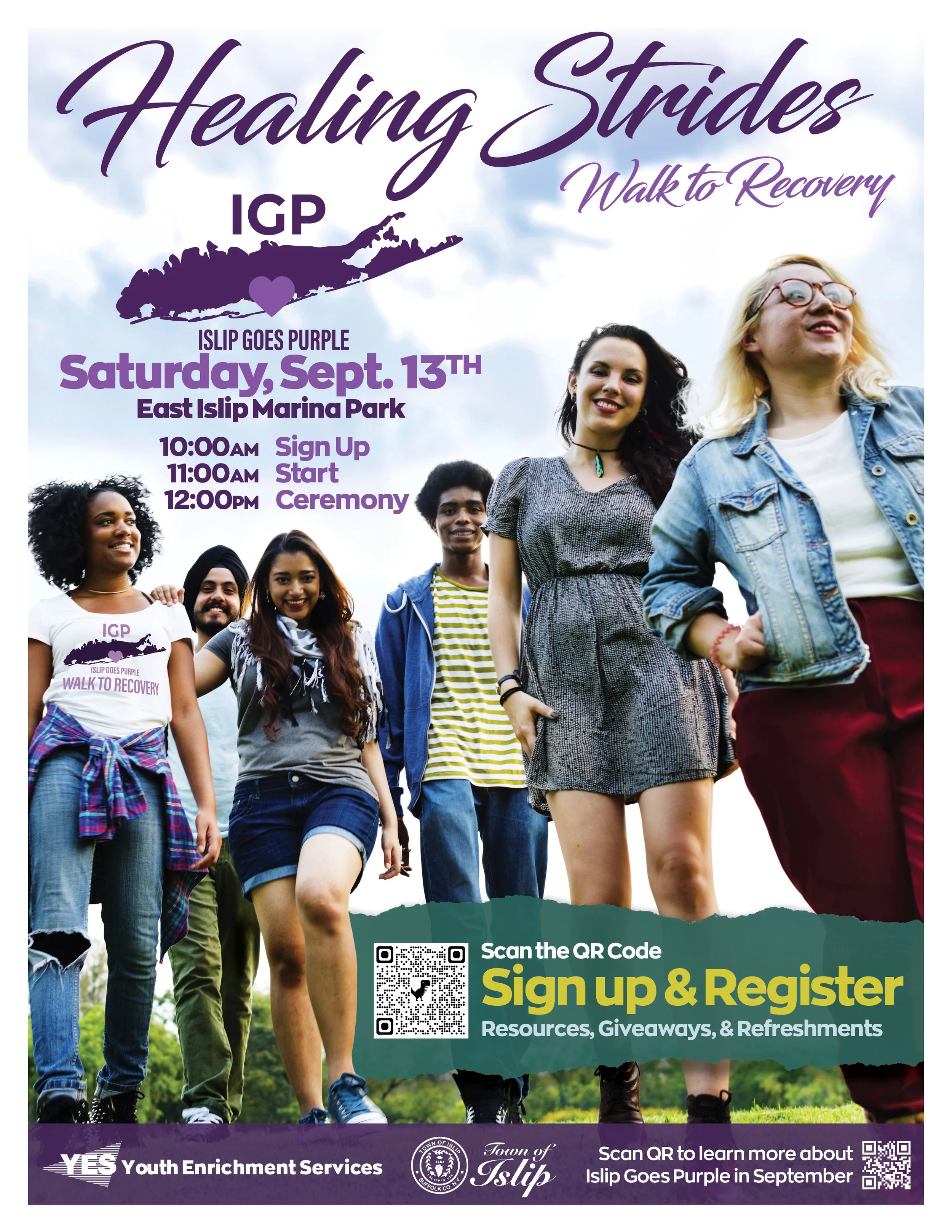 Islip Goes Purple is a month-long initiative designed to unite The Town of Islip in raising awareness of mental health, substance use disorder and celebrating those in recovery. All townships are encouraged to “go purple” and hold events throughout National Recovery Month in September.
